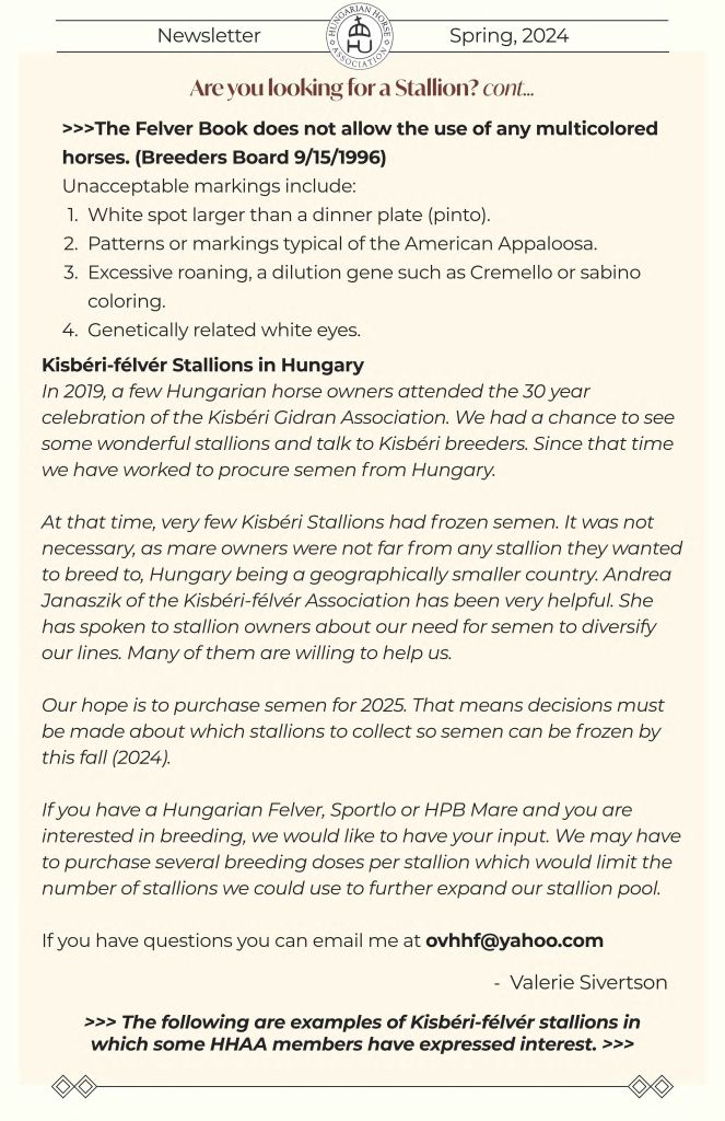Newsletter can also be found at: https://www.hungarianhorseassociation.com/blog