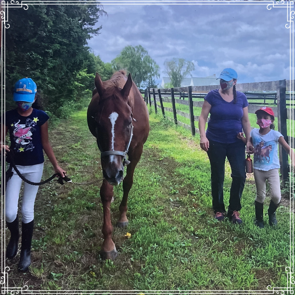 The next time we got to visit Max and Ioana in August, we all had our masks on, it was at a new barn with different energy but it was just as fun and therapeutic. I was so grateful to have met a woman out East who understood the value of just spending time with Horses. It wasn’t about trophies, it wasn’t about events, and it wasn’t about competition. Even though we hardly knew each other, she was welcoming and trusting of me and the girls, to spend time with her and her horses. We also got to meet her new love-bug, Snuggleberry. Her 2nd, (former) race horse that Ioana would eventually incorporate into her equine-therapy practice.